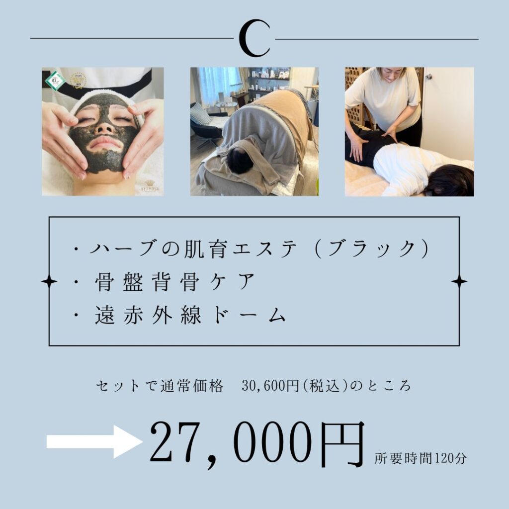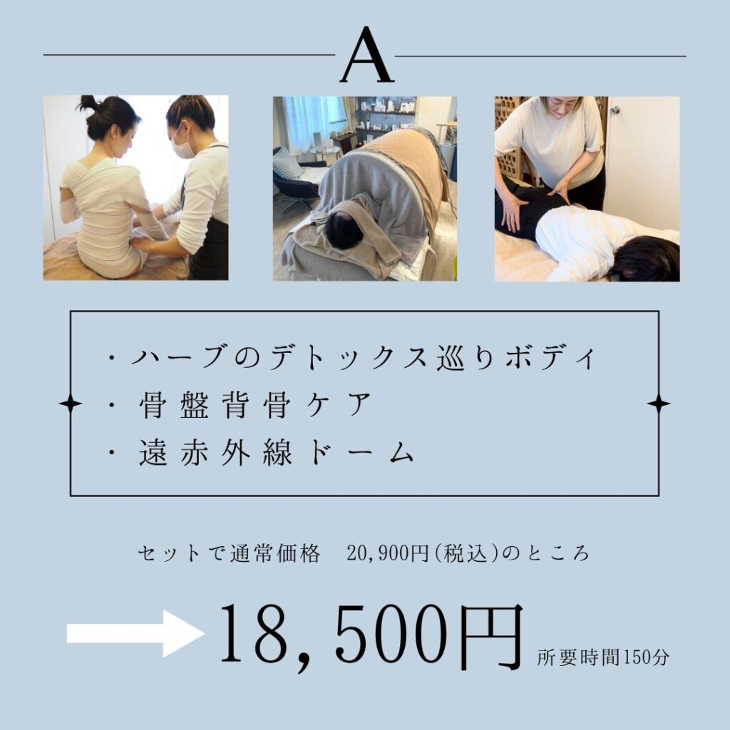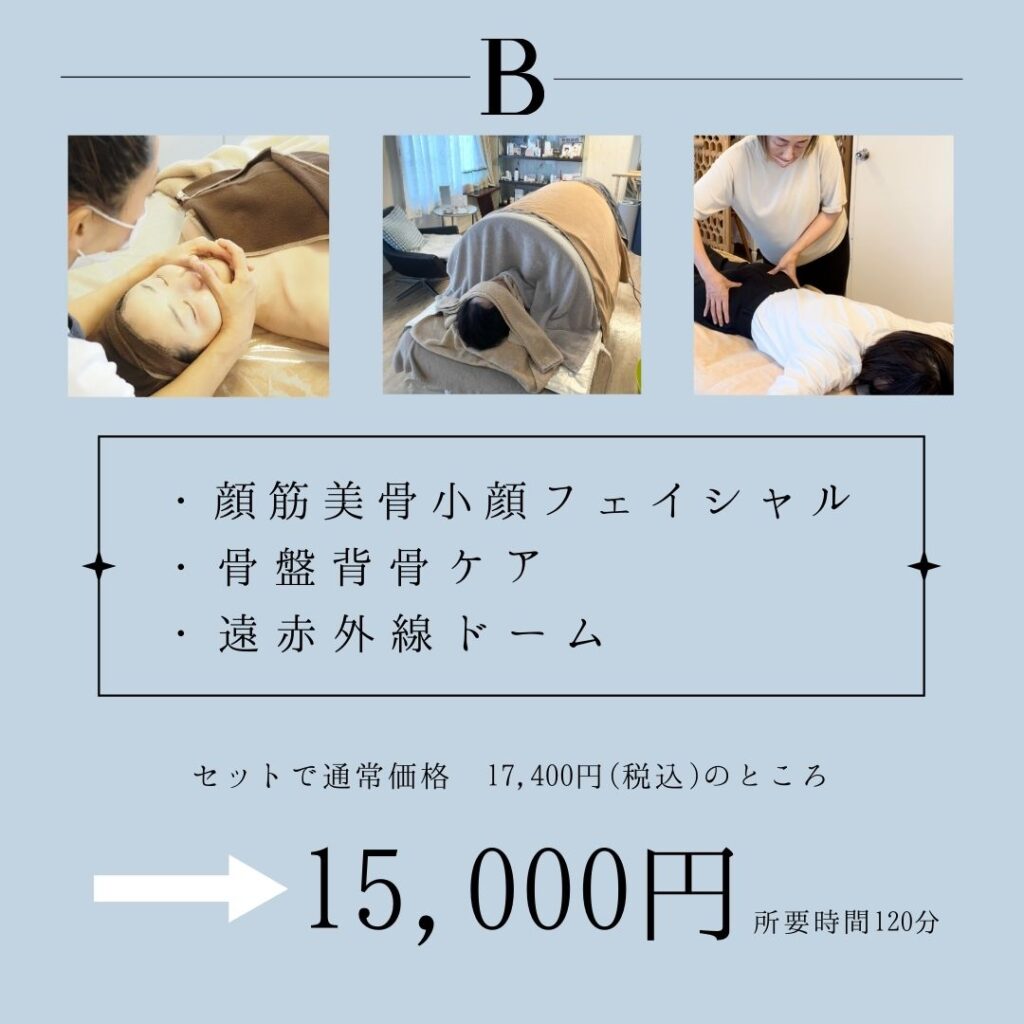 オプション人気No. 1の骨盤背骨ケアをセットにしたコースとなっております。